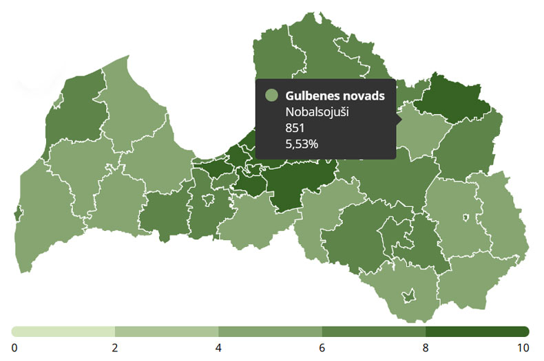 Vislielākā aktivitāte bijusi Rīgā, kur trijās dienās nobalsojuši 9,19% iedzīvotāju, kam seko Vidzeme ar 7,76%, Latgale ar 6,26% un Zemgale ar 5,91% nobalsojušo. Viszemākā aktivitāte bijusi Kurzemē, kur iepriekšējā balsošanā nobalsojuši 5,67% vēlētāju.