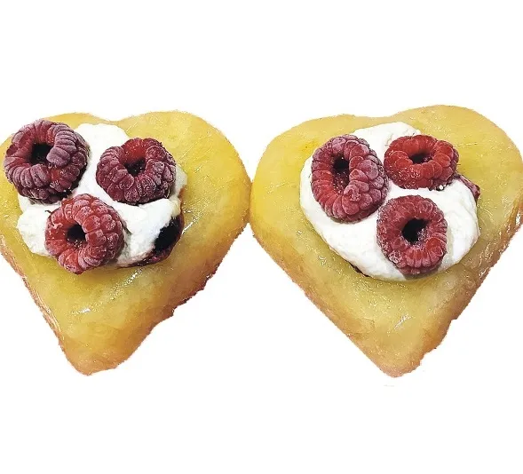 Izvārītos ābolus un bumbierus sietā notecināju (augļu sīrupu izliet nevajag, to vēlāk varam izdzert gardu muti) un sablendēju. Receptē norādīto cukuru nepievienoju. Tā kā augļu masa jau tā šķita saldena, jo satur dabīgos cukurus, pielēju pat nedaudz citrona sulas. Tad pievienoju arī izšķīdināto želatīnu, labi samaisīju un salēju ar pārtikas plēvīti izklātās sirdsveida veidnītēs. Želeju atdzesēju, pēc tam sarecēšanai ievietoju ledusskapī. Pēc vairākām stundām sastingušās sirsniņas atbrīvoju no veidnītēm un rotāju ar putukrējumu un avenēm.