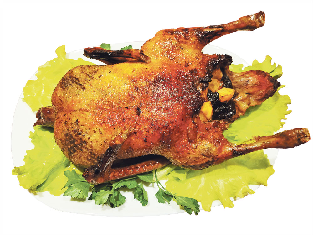Ar āboliem un plūmēm pildīta cepta pīle