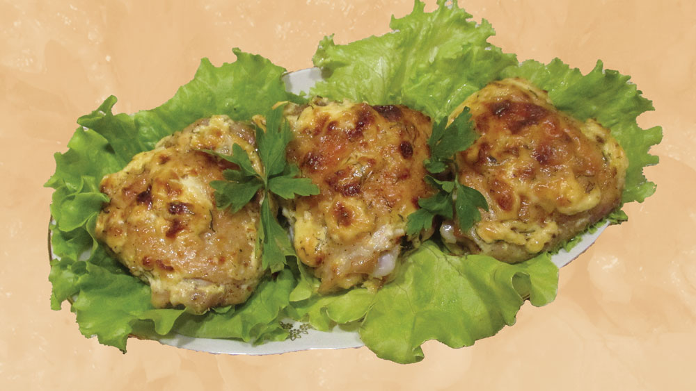 Ar sieru pildīti cāļu šķiņķīši ķiploku mērcē
