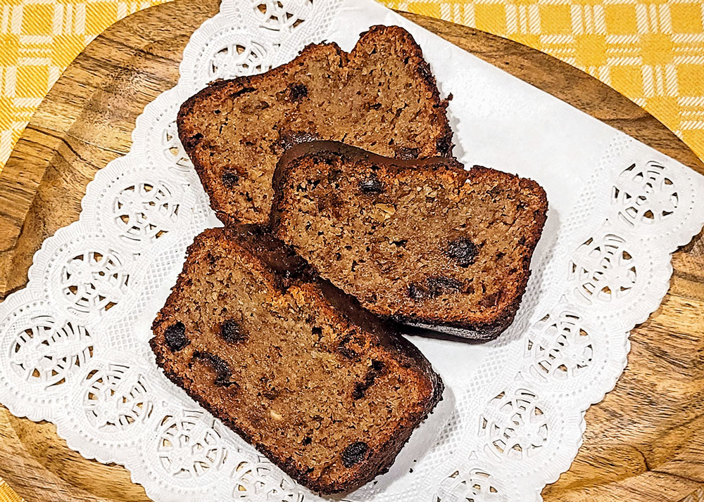 Pilngraudu, mājās bija auzu, miltus izsijāju kopā ar cepamo pulveri. Piekaisīju mandeļu miltus – labi, ka atradu šo recepti, kur izlietot iepakojumā vēl atlikušos, jo ilgi glabāt tos nevajadzētu, – dārgie milti labi garšo arī pārtikas kodēm… Visu labi samaisīju un tad pievienoju iepriekš sagatavotajai banānu masai, atkal visu kārtīgi samaisīju un izlīdzināju mīklu garenajā kēksu cepamajā veidnē. Ievietoju līdz 180 grādiem uzkarsētā cepeškrāsnī un kēksu cepu apmēram 55 minūtes. Cepšanas ilgums atkarīgs no krāsns. Gatavību varam pārbaudīt ar zobu bakstāmo kociņu – kad tas pēc ieduršanas palicis tīrs, kēkss ir gatavs. Pēc tam to atdzesēju, izņēmu no veidnes un varēju griezt šķēlēs.