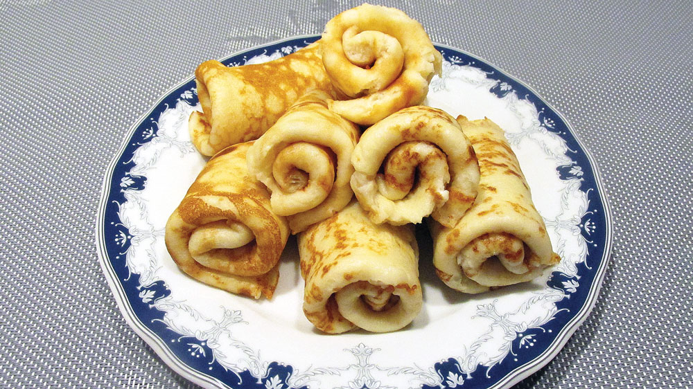 Olas ar mikseri sakūlu kopā ar cukuru. Pēc tam piemaisīju biezpienu, piesijāju miltus ar cepamo pulveri. Visu labi samaisīju un pa daļām lēju klāt pienu. Tā, atkarībā no biezpiena veida, var vajadzēt vai nu vairāk, vai arī mazāk par norādīto. Visbeidzot pievienoju sāli, vaniļas cukuru un augu eļļu. No pagatavotās mīklas uz nedaudz ar eļļu ietaukotas uzkarsētas pannas izcepu garšīgas pankūciņas, liku tās uz šķīvja citu virs citas, pēc tam katru pārliecu uz pusēm un sarullēju.