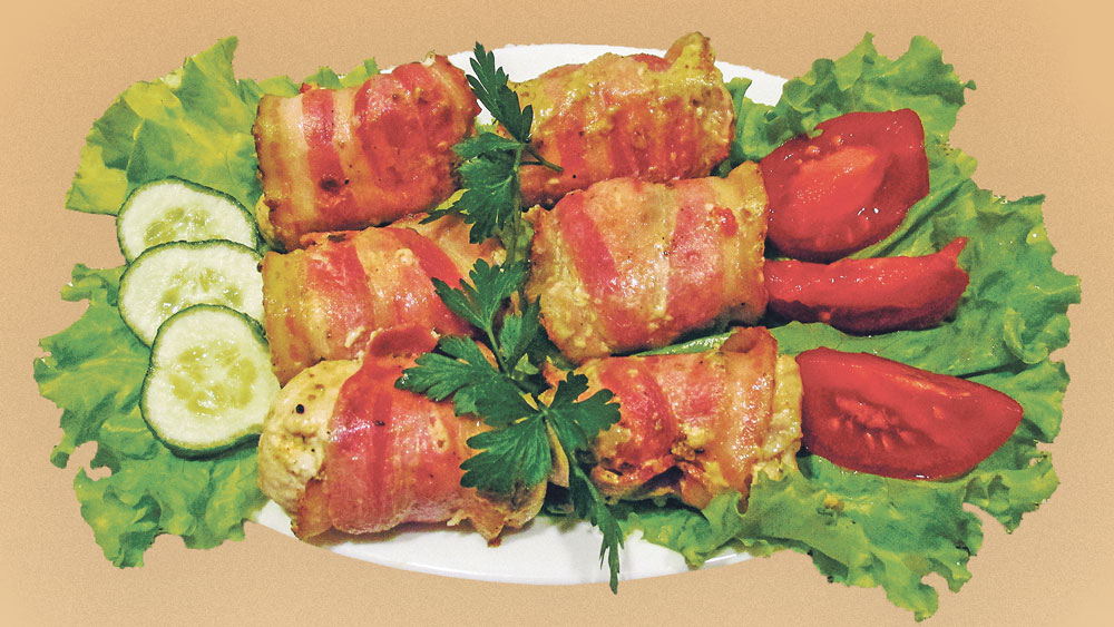Cāļa krūtiņas fileju ruletītes bekona apvalkā