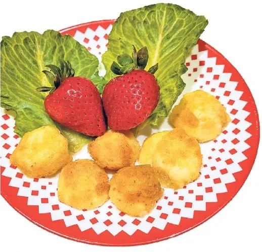 Iepakojumam mini bumbiņu nolēju šķidrumu. Bļodiņā sakūlu olu. Atsevišķā šķīvītī iebēru rīvmaizi. Svaigā siera bumbiņas vispirms apviļāju sakultajā olā, pēc tam – rīvmaizē. (Pacietīgākie šīs darbības var veikt divreiz.) Pēc tam apviļātās bumbiņas no visām pusēm apcepu uzkarsētā augu eļļā, līdz tās kļuva zeltainas. Lai atbrīvotos no liekajām taukvielām, tās vēl apsusināju papīra dvielī. Tad jau cepto sieru varam baudīt kopā, piemēram, ar zemenēm un svaigiem zaļumiem.