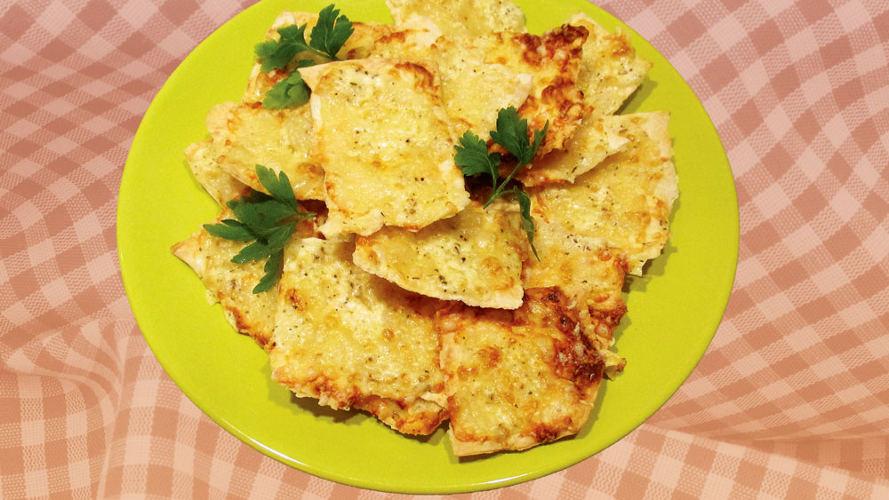 Lavašu sagriezu kvadrātiņos, tos pārsmērēju ar skābā krējuma maisījumu, pārkaisīju ar rīvētu sieru un izkārtoju uz plāts, kas izklāta ar cepamo papīru. Cepu līdz 180 grādiem uzkarsētā cepeškrāsnī 8 – 10 minūtes. “Čipsi” izdevās kraukšķīgi un gardi.
