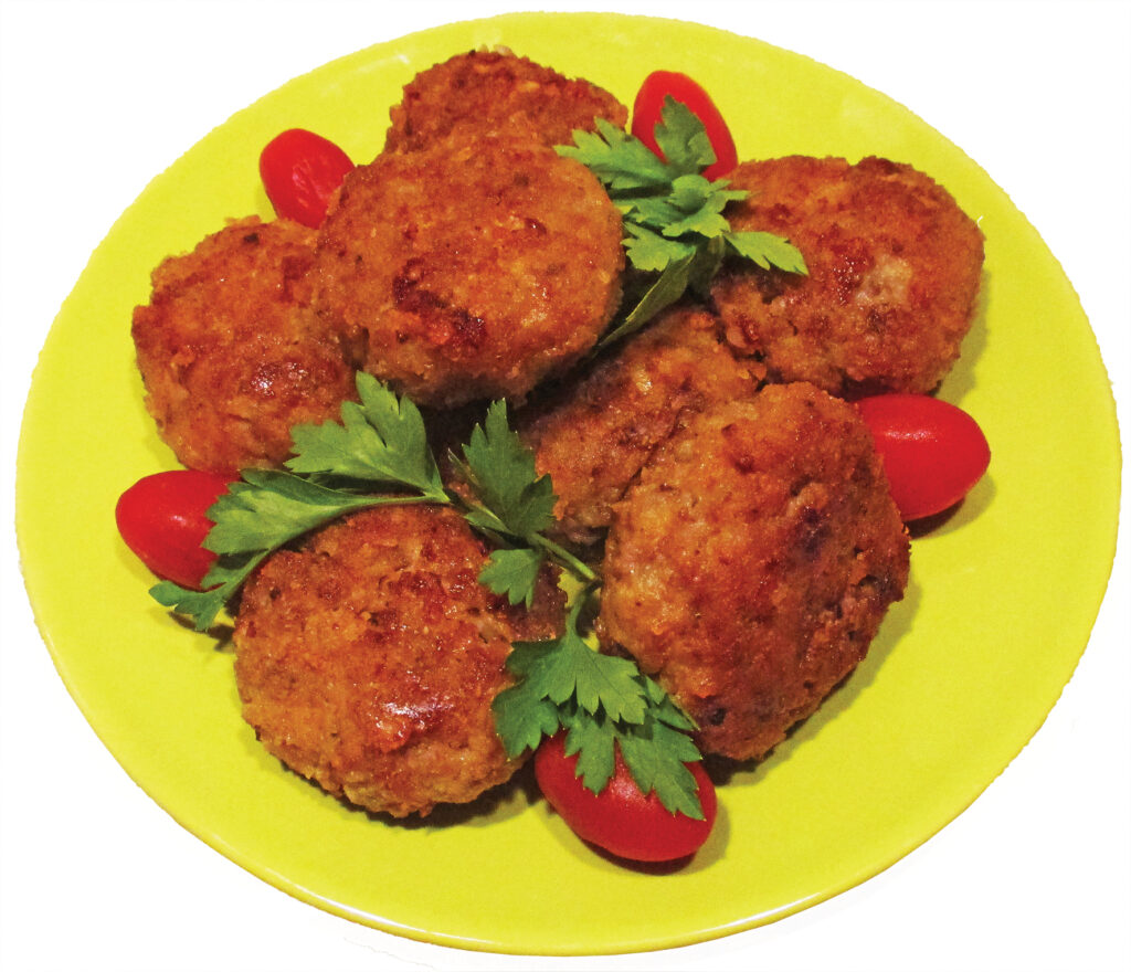 400 – 450 gramu maltās gaļas, 200 gramu kartupeļu biezeņa, 180 gramu vārītu griķu, 1 sīpols, sāls, pipari, 1 ola, rīvmaize apviļāšanai, augu eļļa cepšanai.