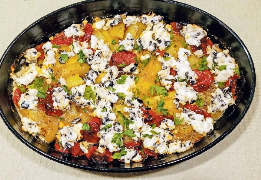Labu apetīti! Kartupeļi ar ķiršu tomātiem un fetu
