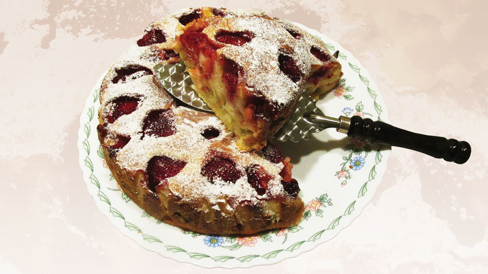 Kefīra mīklas pīrāgs ar rabarberiem un zemenēm