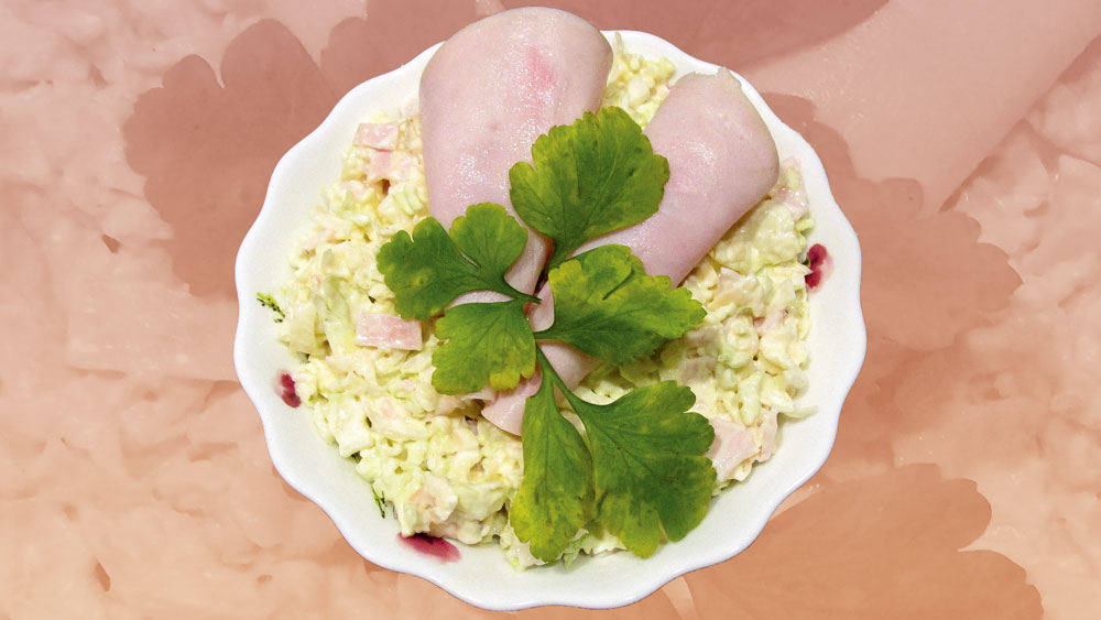 Ķīnas kāpostu salāti ar šķiņķi un sieru