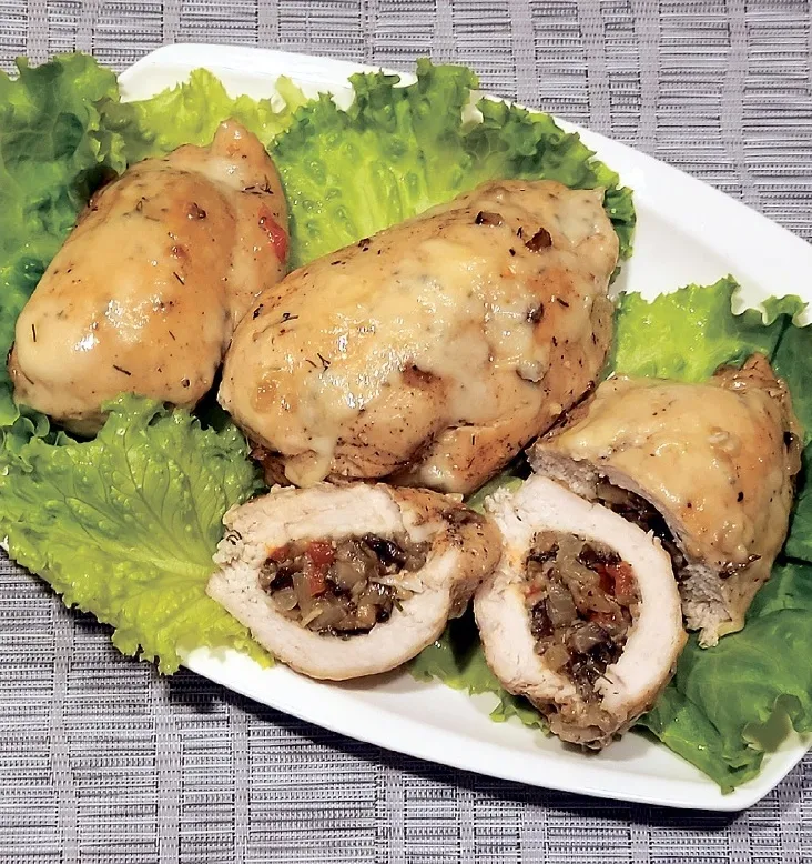Labu apetīti! Ar sēnēm un dārzeņiem pildītas cāļa krūtiņas filejas
