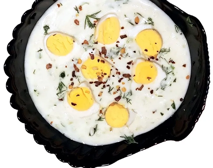 AVOKADO, nomizotus, mīkstus un gatavus, sagriezu gabalos, liku blendera krūzē un sasmalcināju biezenī. Pēc tam pieliku spiedē sasmalcinātus ķiplokus un sablendēto masu iemaisīju no ledusskapja tikko izņemtā aukstā kefīrā. Pievienoju sīki sakapātus diļļu un pētersīļu zaļumus, sāli, piparus, kā arī citrona sulu. Auksto zupu sadalot ēdājiem, katram šķīvī varam likt pa vienai nolobītas vārītās olas pusītei, pārkaisīt piparus un čili pārslas.