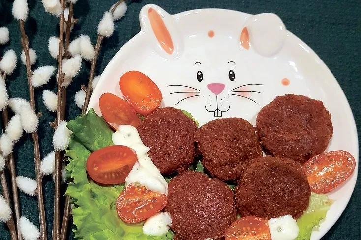 Pannā ar olīveļļu uz nelielas uguns apcepu sasmalcinātus sīpolus un ķiplokus. Liku blendera krūzē, turpat – arī sagrieztas vārītas bietes, notecinātus konservētos turku zirņus un pētersīļu zaļumus. Iztiku bez svaigā koriandra. Visas sastāvdaļas sablendēju, pievienoju kurkumu, kumīnu un sāli, piemalu piparus un piemaisīju miltus. No masas izveidoju nelielas bumbiņas, apviļāju miltu un rīvmaizes maisījumā un uz stundu ievietoju ledusskapī. Pēc tam pannā uzkarsēju olīveļļu un uz nelielas uguns apcepu bumbiņas no abām pusēm, līdz tās no ārpuses kļuva viegli kraukšķīgas. Tad tās varam ēst ar grieķu jogurta un gurķu mērci, svaigiem salātiem, tomātiem vai maizi, piemēram, pitu.