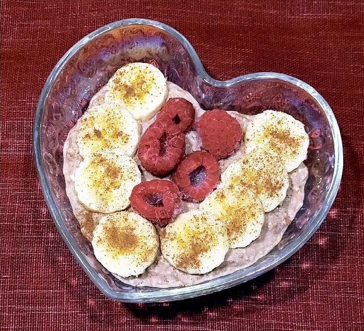 Biezpienu sablendēju kopā ar grieķu jogurtu, kakao pulveri un medu viendabīgā masā. Pēc tam iemaisīju ar dakšiņu putriņā saspaidītu pusi banāna. Visu pārliku saldēdiena trauciņā, rotāju ar banāna ripiņām, kam pārkaisīju kanēli, un avenēm. Pirms mielošanās desertu vēl ieliku ledusskapī uz minūtēm desmit, lai krēms sabiezē.