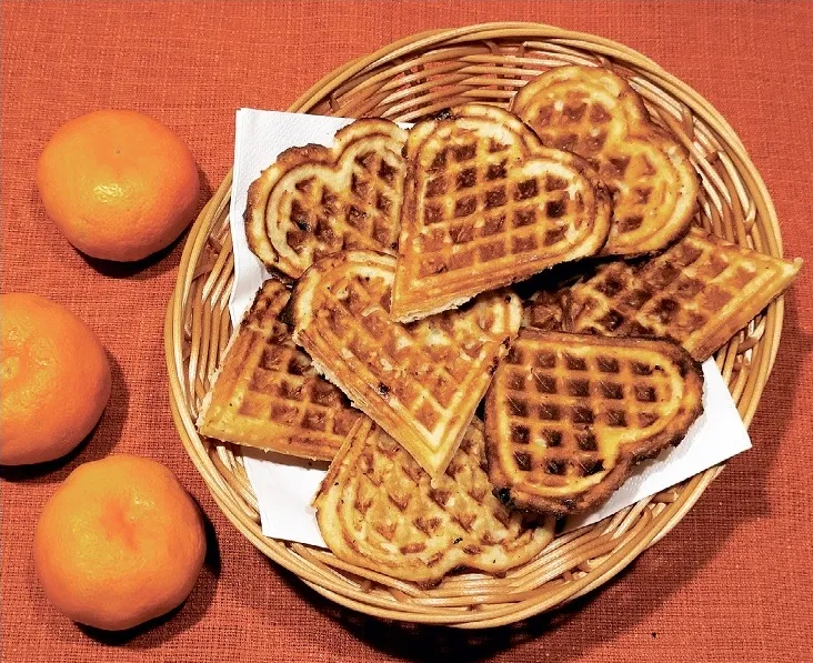 Biezpienu saberzu kopā ar cukuru, piesitu olas un samaisīju. Tad pielēju pienu un izkausētu sviestu. Masu atkal samaisīju, pēc tam iesijāju miltus ar cepamo pulveri un piebēru sāli. Mīklai jābūt bieza krējuma konsistencē. Tad atvēru uzkarsēto plītiņu un mīklu ar karoti liku uz tās apakšējās virsmas, taču ne līdz malām, plītiņu aizvēru, kādu laiku vēl mazliet piespiedu, lai mīkla izdalās vienmērīgāk, un cepu dažas minūtes, līdz vafeles kļuva zeltaini brūnas.