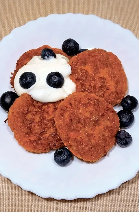 Burkānus nomazgāju, notīrīju un sarīvēju sīkās skaidiņās. Pievienoju olas, miltus, pilngraudu auzu pārslas, pienu un šķipsniņu sāls. Kādu laiku atstāju mīklu uzbriest. Tad pannā sakarsētā augu eļļā apgrozot izcepu pankūkas. Tās ēdot, pēc izvēles, vēl varam pārkaisīt ar cukuru, pārliet ar skābo krējumu vai ievārījumu, pārbērt ar ogām.