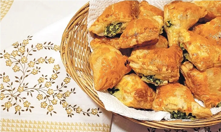 LABU APETĪTI! Kārtainās mīklas trīsstūrīši ar fetas siera un spinātu pildījumu
