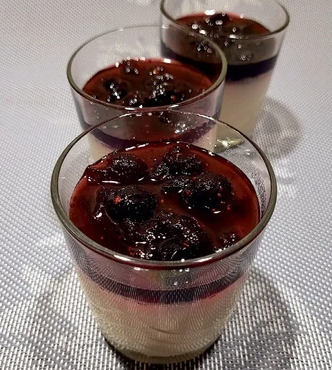 Želatīnu aplēju ar ūdeni un minūtes desmit ļāvu uzbriest. Katliņā ielēju pienu, piekaisīju cukuru (tik daudz, cik receptē norādīts, pat nepievienoju), vaniļas cukuru garšai un karsēju, raugoties, lai nesāk vārīties. Karstajā pienā liku uzbriedināto želatīnu un maisīju, lai tas izšķīst. Saldo maisījumu salēju stikla trauciņos, no šī daudzuma varēs pamieloties četri ēdāji, un atdzesēju. Pēc tam ievietoju ledusskapī sastingšanai. Želejai pirms baudīšanas pārlēju atdzesētu ķiršu mērci. Ja saldētie ķirši nav pieejami, varam izmantot arī kādu ievārījumu ar ķiršu ogām vai mērci izvārīt no citām ogām vai augļu gabaliņiem.