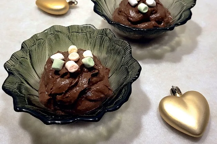 87 procentu tumšo šokolādi izkausēju saldajā krējumā. Izvārīju un atdzesēju stipru kafiju. Avokado nomazgāju, pārgriezu uz pusēm, izņēmu kauliņu, bet mīkstumu liku blendera krūzē. Tur pievienoju arī saldajā krējumā izkausēto šokolādi, stipro kafiju, dateles bez kauliņiem saldumam, valriekstu kodolus, sāli un vanilīnu. Ar rokas blenderi visu kopā saputoju līdz viendabīgai, gludai un gaisīgai masai. To izliku stikla trauciņos un atdzesēju.