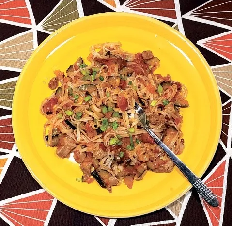 Labu apetīti! Tītara gaļas gulašs ar rīsu nūdelēm