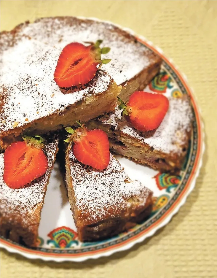 Mannas kūka ar zemenēm un rabarberiem