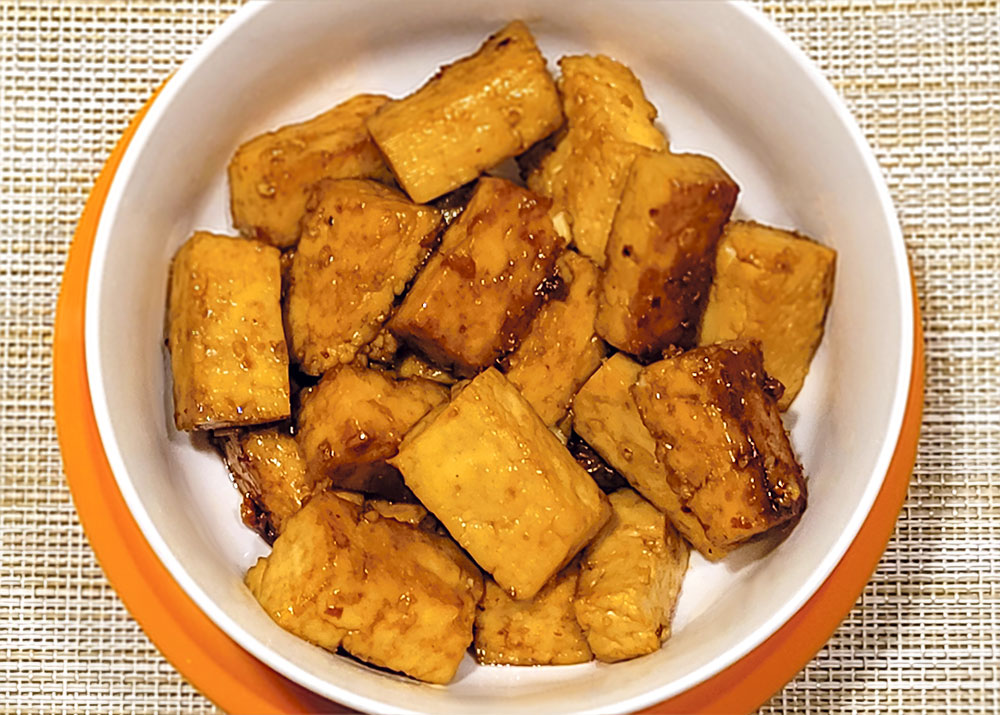 Nesen pirmo reizi jau nobaudīju ceptu biezpienam līdzīgo sieru no sojas pupiņām jeb tofu. Taču bija atlikusi vēl otra iepakojuma puse, tādēļ, lai to izmantotu, sameklēju nedaudz citādāku recepti, kā šo samērā bezgaršīgo produktu padarīt garšīgāku. Šoreiz sieru vispirms sagriezu gabaliņos, iemarinēju un tikai tad cepu.