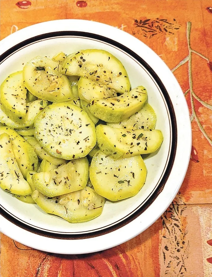 Kabaci noskaloju, apsusināju un sagriezu gabalos. Liku tos dubultā polietilēna maisiņā ar sausajām garšvielām. Pielēju ābolu etiķi un augu eļļu. Pievienoju arī trīs sasmalcinātas ķiploka daiviņas. Maisiņu aizsēju un labi sakratīju, lai visas sastāvdaļas būtu kārtīgi samaisījušās. Paciņu ievietoju ledusskapī, un jau pēc 15 minūtēm varēju noņemt “provi”. Jo ilgāk kabacīšus turēsim ledusskapī, jo labāk tie “sadraudzēsies” ar garšvielām.