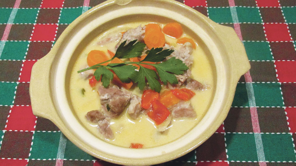 Mērcē sautēta cūkgaļa ar dārzeņiem