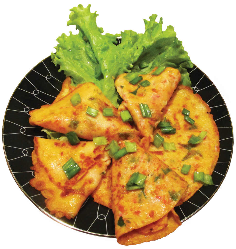 Tomātiem jānovelk miziņa un mīkstums jāizberž caur sietu. Es pārgrieztus tomātus sarīvēju uz rīves, reizē atbrīvojoties arī no miziņām. Olas ar dakšiņu saklapēju, pielēju pienu, sarīvētos tomātus, piekaisīju sāli un arī piparus. Piebēru miltus un samaisīju mīklu, kam jābūt nedaudz biezākai kā pankūkām. (Šoreiz omleti cepu no divām nelielām olām, tādēļ samazināju arī pārējo sastāvdaļu daudzumu, taču man šķita, ka piena tomēr vajag mazāk, jo arī tomātu masa bija pašķidra, bet miltu tāpēc – vairāk.) Masai piemaisīju arī sasmalcinātus pētersīļu zaļumus. Cepu omleti ietaukotā uzkarsētā pannā un gatavu pārkaisīju ar sīpolu lociņiem. Arī atdzisusi tā bija maiga un garda.
