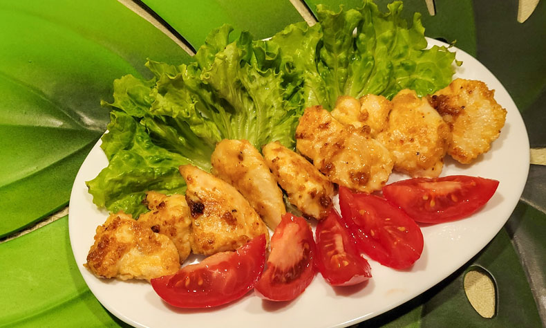 Cita ēdiena pagatavošanai netiku izlietojusi visu iepakojumu cāļa krūtiņas mazo fileju. Ko darīt ar atlikušajām? Lai gan grilēšana daudzdzīvokļu namā nav iespējama, jāizmēģina šī kārdinošā šašlika recepte – vismaz viena mazā panniņa taču sanāks. Cāļa filejas ir viegli iemarinējamas, un tās ātri tiks gatavas. Filejas sagriezu gabalos, pievienoju gaļai attiecīgi nepieciešamo majonēzes daudzumu, citrona sulu un sajaucu. Piekaisīju arī kariju un sāli un nu jau ar rokām visu vēlreiz rūpīgi samaisīju, lai katrs gabaliņš būtu apviļāts pikantajā mērcē. Bļodiņu pārsedzu ar pārtikas plēvīti un ievietoju ledusskapī, lai gaļa iemarinētos. Lai gan to tur varētu atstāt arī ilgāku laiku, pietiek pat ar pusstundu, lai filejas gabaliņi jau būtu ievilkušies. Pēc tam tos cepu pannā uz plīts apgrozot, līdz tie kļuva zeltaini brūni no visām pusēm un gatavi. Garša – burvīga! Arī svētku galdu šāds šašliks lieliski papildinātu.