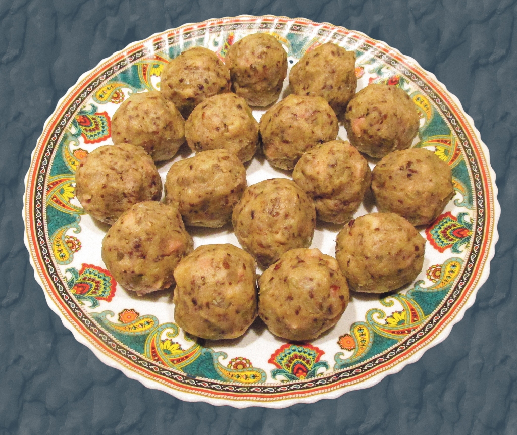 Ziemassvētku maģisko deviņu un pat vairāk ēdienu klāstā nav iztikts arī bez pelēkajiem zirņiem – katram jāapēd vismaz sauja, un svētku vakarā tos nedrīkst atstāt uz galda, lai nākamajā gadā nebūtu liela raudāšana. Šoreiz biju iegādājusies jau izvārītus pelēkos zirņus, arī vārītos kartupeļus šim nolūkam biju atstājusi, tādēļ šā ēdiena pagatavošana daudz laika neaizņēma. Atlika tikai zirņus un kartupeļus kopā samalt gaļas maļamajā mašīnā. Žāvēto gaļu (derēs bekons, krūtiņa, pavēdere vai vaidziņš) sagriezu mazos kubiņos un kopā ar tāpat sagrieztiem sīpoliem apcepu. Kad gaļa ar sīpoliem jau bija kļuvuši caurspīdīgi, pannā pievienoju sviestu un sāli garšai. Pēc tam bļodā samaisīju visas paredzētās sastāvdaļas un no masas veidoju nelielas bumbiņas jeb pikas. Klāt tām varam pasniegt skābo krējumu, jogurtu, kefīru vai paniņas.
