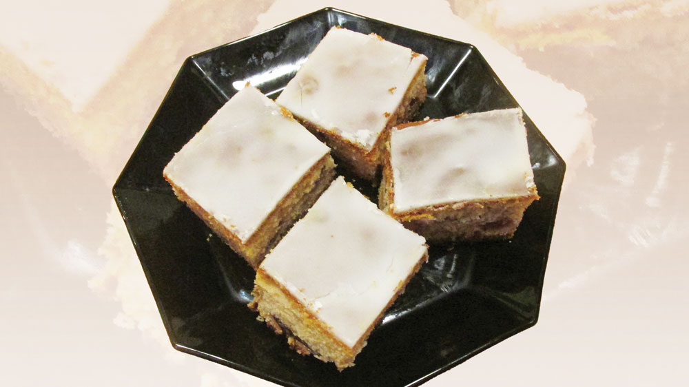 Glazūrai izmantoju gan tikai 100 gramu pūdercukura, to samaisīju ar 2 – 3 ēdamkarotēm ūdens viendabīgā masā un ar to pārsmērēju pīrāgu. Atstāju, lai glazūra pilnībā sacietē un veido plānu kraukšķīgu kārtiņu – tā piešķīra pīrāgam neatkārtojamu “rozīnīti”.