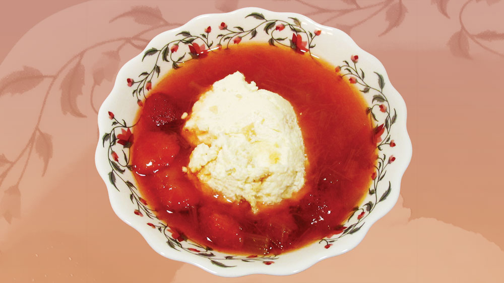 Rabarberu un zemeņu ķīselis ar vafeļu krēmu