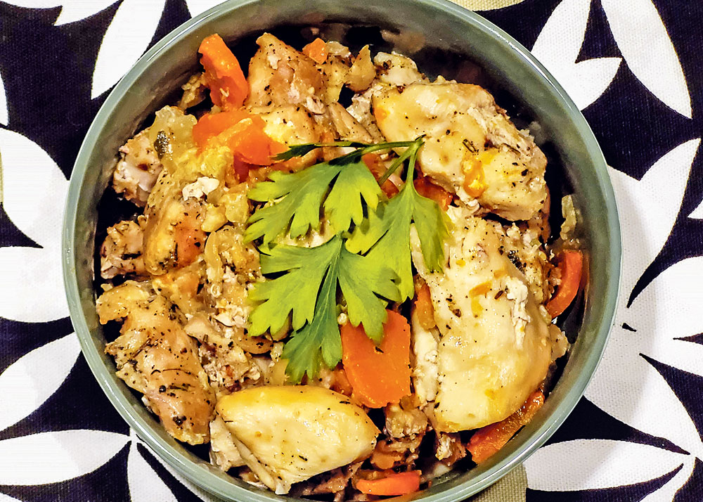 Reizēm gadās, ka nopirktie svaigās gaļas produkti uzreiz netiek likti lietā, bet ievietoti saldētavā un “aizmirsti”. Pēc tam no veikala atkal tiek atnesti jauni un laika trūkuma vai citu iemeslu dēļ iepriekš iegādātie netiek atkausēti. Taču arī tie reiz ir jāizmanto. Par šo pagājušajā gadā ieraudzīto un malā atlikto gaļas pagatavošanas recepti atkal atcerējos tad, kad biju no saldētavas izņēmusi un atlaidinājusi atkaulotas cāļu kājas bez ādas. Kaut ko līdzīgu reiz jau biju izmēģinājusi pirms gadiem desmit un atzinusi par gardu esam. Nu gaļu (te varam izmantot arī citas putniņa daļas – šķiņķīšus, stilbiņus, spārniņu augšdaļas) sadalīju gabaliņos tā, lai varētu ievietot litra tilpuma stikla burkā. Gaļai bļodā piekaisīju sāli, piparus, garšvielu maisījumu putnu gaļas ēdieniem (te labi noder timiāns, rozmarīns, kāds garšaugu maisījums), pieliku pāris lauru lapas, divas sasmalcinātas ķiploka daiviņas, sagrieztu nomizotu sīpolu un notīrīta neliela burkāna pusripiņas. Visu labi apmaisīju un atstāju uz brīdi ievilkties. Pēc tam bļodas saturu – gaļu kopā ar pārējām sastāvdaļām – cieši kārtoju burkā. Līdz pašai augšai to nevajag piepildīt, lai šķidrums, kas radies cepoties, nekāptu pāri tās malām. (Šī iemesla dēļ visa kopumā šoreiz varēja būt pat vēl mazāk.) Burku nosedzu ar foliju un ievietoju aukstā, neuzkarsētā cepeškrāsnī, to noregulēju uz 180 grādiem un karsēju vairāk par stundu. Laiks būs atkarīgs no gaļas gabalu lieluma un veida, kā arī trauka tilpuma. Kad gaļa, sautējoties savā sulā, bija kļuvusi mīksta, burku uzmanīgi izcēlu no krāsns. Šādi pagatavotu ēdienu, ja, protams, vēl paliek pāri no maltītes kopā ar rīsiem, griķiem, kartupeļiem vai citām saknēm, atdzesētu vēsā vietā varam uzglabāt otrai dienai, tad gardā suliņa būs saželējusi. Bet, ja vēlamies pagatavoto uzglabāt vēl ilgākam laikam, tikko karstu no krāsns izņemtu burku vajag cieši aizvākot, atdzesēt un uzglabāt vēsumā. Pēc tam to kā ēdiena sagatavi ērti varam izmantot arī sautējumā, zupā vai kā citādi.