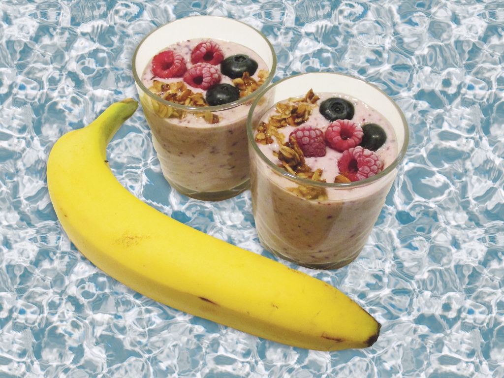 Smūtijs ar ogām, banāniem un čijas sēkliņām