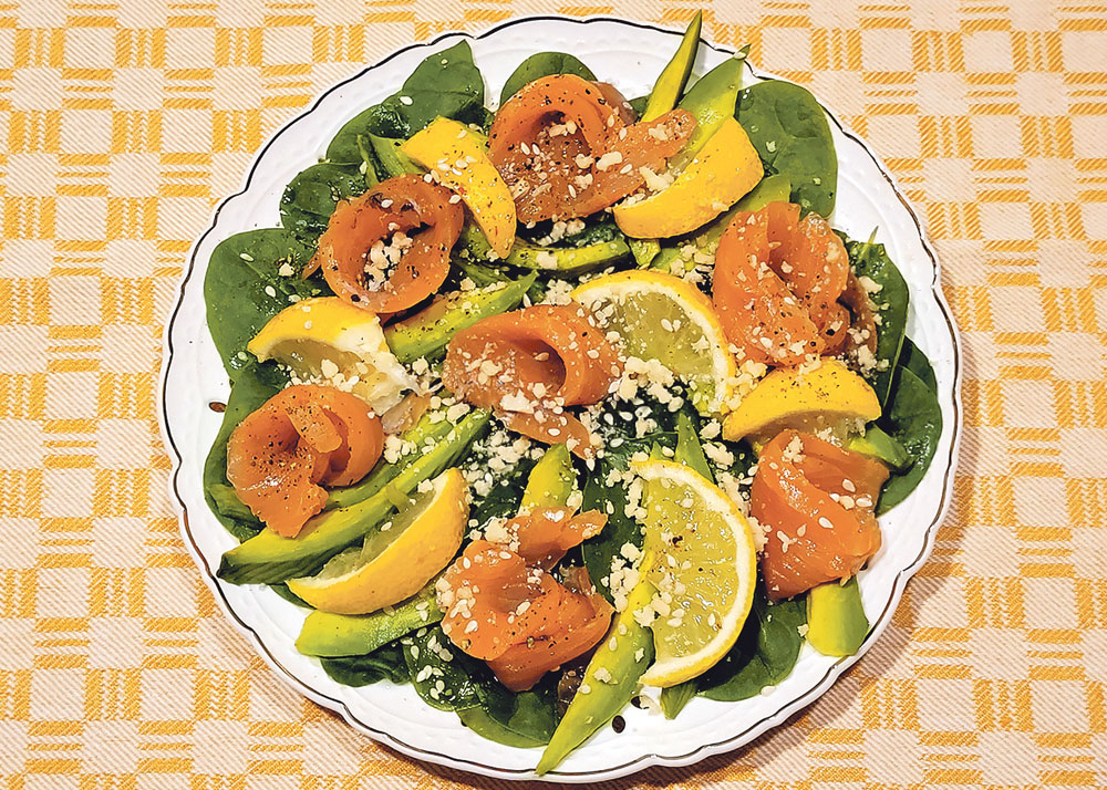 Svētku reizē sevi un savus mīļos varam palutināt arī ar šādu aromātisku un gardu ēdienu, jo visas tā sastāvdaļas lieliski sader kopā. To varam pasniegt gan lielākā traukā, gan arī uz atsevišķiem šķīvīšiem. Daudz jānoņemas ar šo salātu pagatavošanu nebūs, jo veikalā iespējams iegādāties jau šķēlītēs sagrieztu mazsālītu lasi nelielos iepakojumos. Arī siers ir nopērkams jau sarīvēts. Avokado jāizraugās mīkstāks, mans iegādātais šoreiz gan nu nekā negribēja nogatavoties.