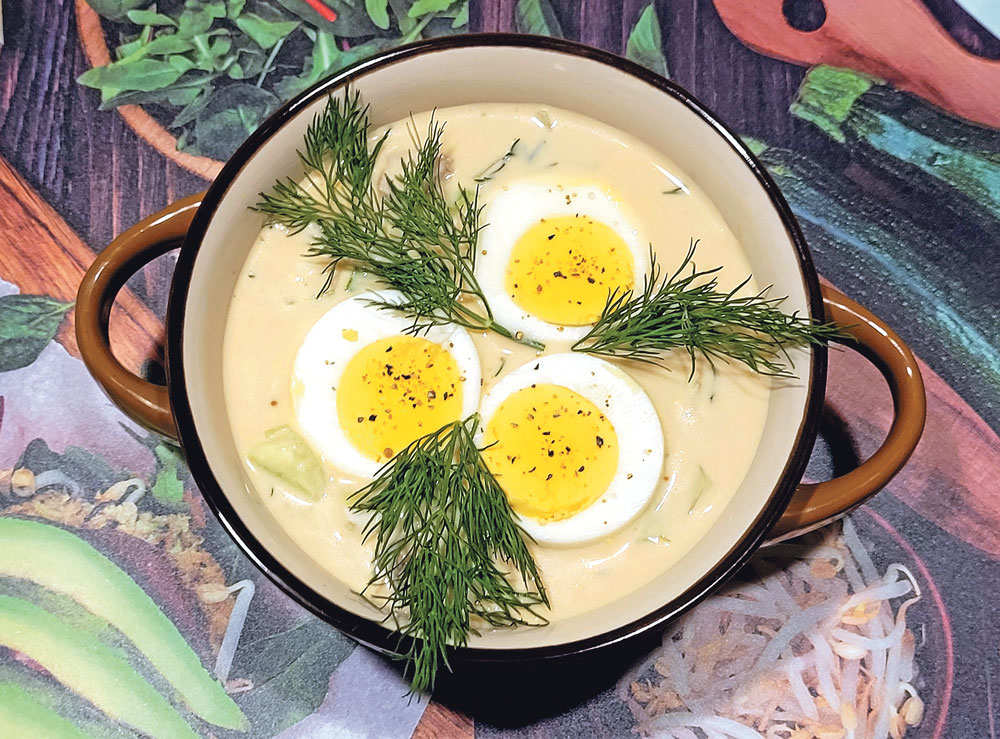 ŠOREIZ, vadoties pēc atrastās receptes, aukstās zupas pagatavošanai izmantoju rjaženku. Šo skābpiena produktu ar svaiga krējuma garšu un viegli rūsgano krēma krāsu biju iegādājusies ar bifidobaktērijām. Rjaženka ir ar maigāku garšu atšķirībā no kefīra. Izrādās – tās dzimtene ir Ukraina.