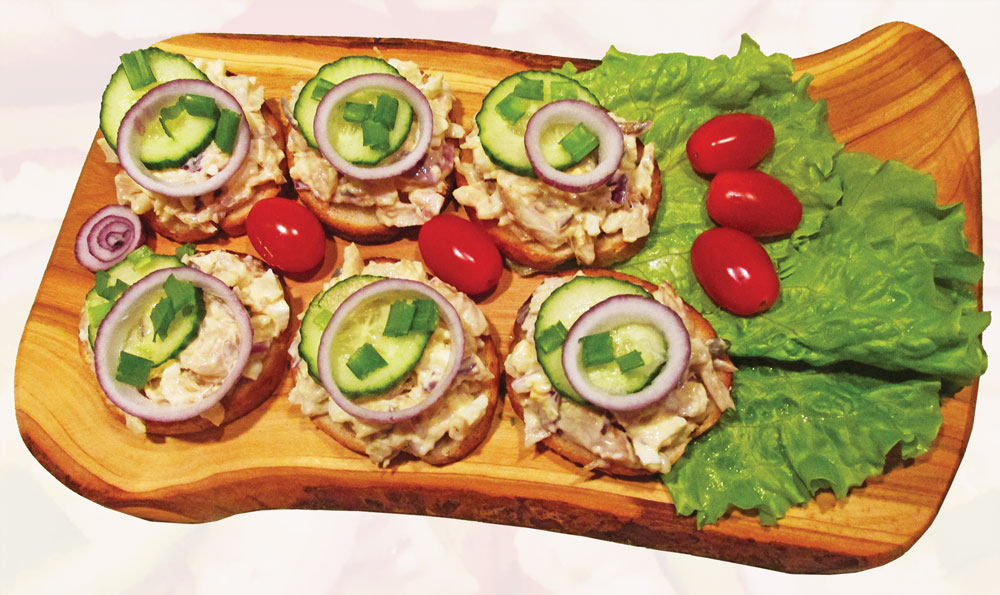 Uzkodu maizītes ar karsti kūpināta jūras asara salātiem