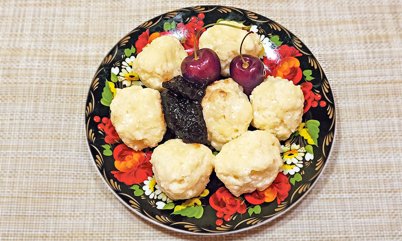 Katlā uzvārīju vieglu sālsūdeni, liku tajā no pagatavotās biezpiena mīklas izveidotas bumbiņas un vārīju 5–8 minūtes, līdz tās bija uzpeldējušas. Mīklu verdošā ūdenī vienkāršības labad varam likt arī ar karoti un izvārīt klimpiņas. Pēc tam ar putu karoti gatavās bumbiņas no ūdens izņēmu. Tad tās varam baudīt ar kādu iecienītu ievārījumu vai skābo krējumu, kā arī ar ogu mērci vai ķīseli.