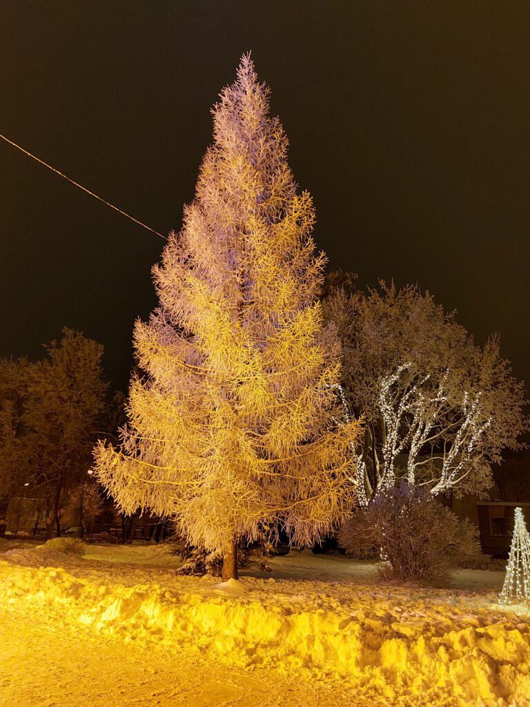 patika tradicionāli ar lampiņvirtenēm apvītie un izrotātie koki, tomer arī tagad skvērs ir skaists un egle iederas