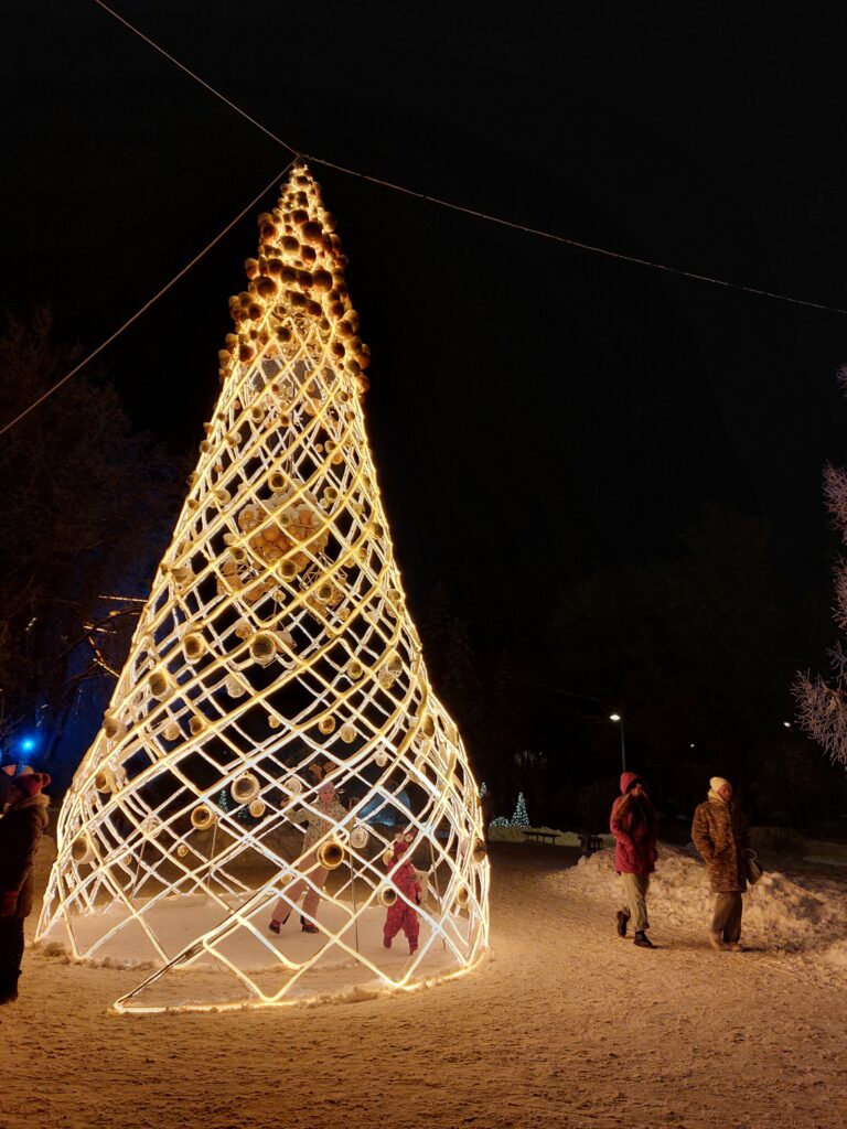 Gulbenē egli tradicionāli iededz pēc krievu kalendāra, nevis kā citur rietumu pasaulē. Apgāztais saldējuma konuss ir skaists, žēl ka šķībs. Viens labums, ka netika nocirsta dzīva eglīte. Tas no sirds priecē.