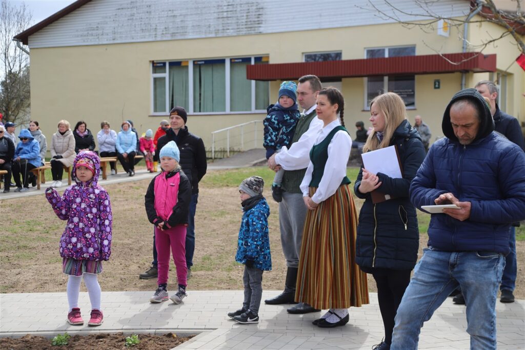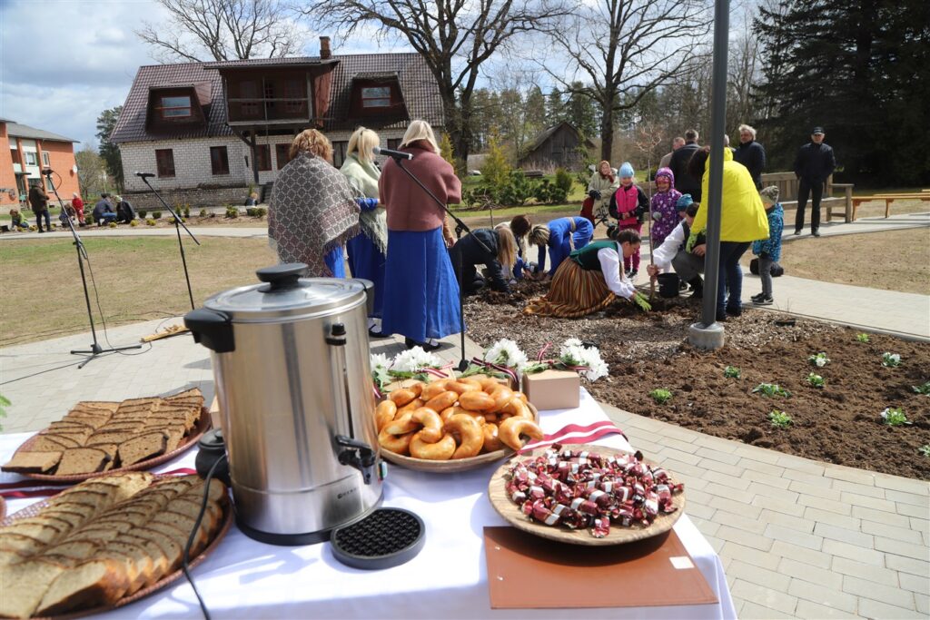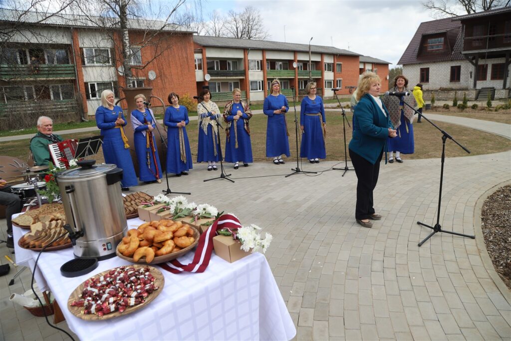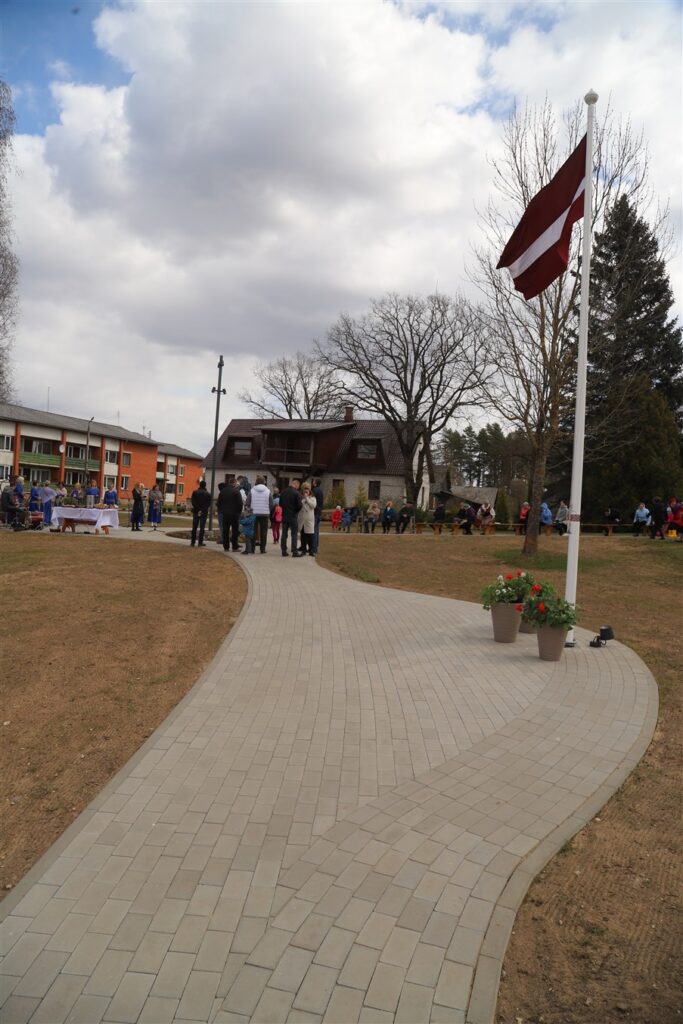 Goda vietā bija un ir masts ar valsts karogu. Tas vakara stundās ir izgaismots. Laukumā ir soliņi, saskaņā ar ieceri – no kadiķa gatavoti. Bija kopā būšanas prieks, svētku galds ar baltu galdautu un cienastu uz tā. Notika stādīšanas talka, papildinot zaļo zonu ar koku un puķu stādiem. Dziedāja un muzicēja Lejasciema folkloras kopa “Smaržo siens”, Jaungulbenes postfolkloras grupa “Dadzes” un kapela “Retro”. Skanēja daudz svinīgu un sirsnīgu runu.