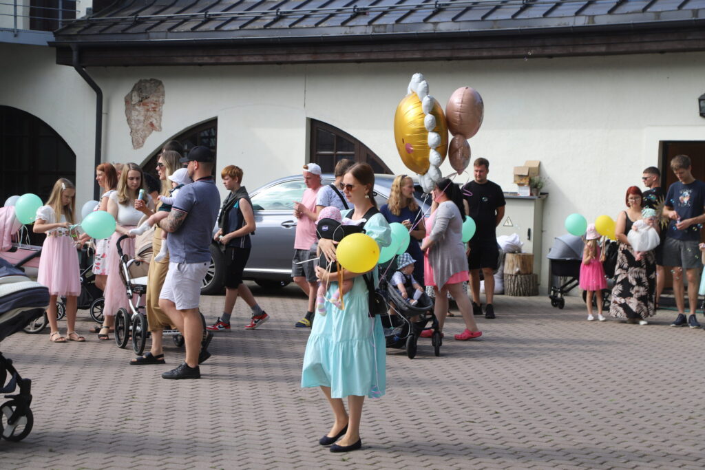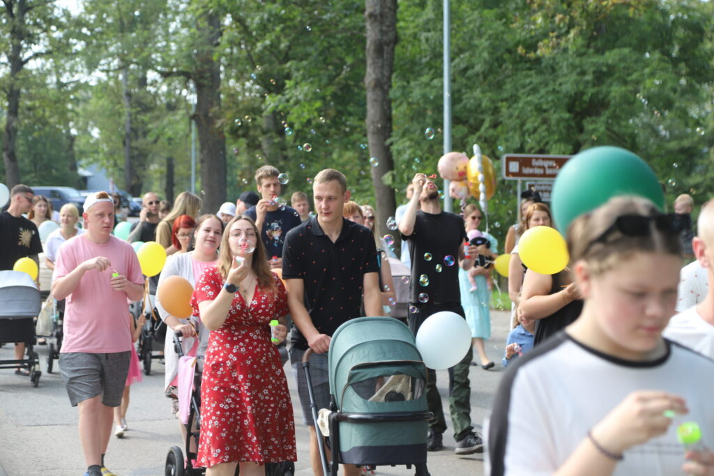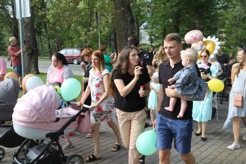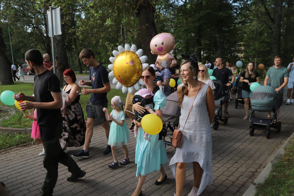 Pasākumā piedalījās arī gulbeniešu Ceriņu ģimene. Dvīņu Artūra un Kates māmiņa Ilze Ceriņa tagad ir četru bērniņu mamma. Viņa atzīst, ka ar dvīņiem ikdiena nav nemaz tik viegla, tāpēc ir prieks, ka vecākā meita Diāna un dēls Linards vasaras brīvlaikā ir lielākie palīgi. 3.septembrī dvīņiem apritēs gads, bet Ilzei joprojām spilgti atmiņā palicis mirklis, kad ārsts Madonā teicis – būs divi bērniņi. “Sākumā neticēju. Domāju, ka joko. Biju pārsteigta!” stāsta Ilze. Tāpat kā citi vecāki arī viņa priecājas par šo tradīciju – kopīgo mazulīšu gājienu un svinīgo sumināšanu. “Gājienā eju trešo reizi. Man patīk šī tradīcija. Bērni redz citus mazuļus. 47 mazuļi – tas gan ir maz. Kad gājienā devos ar vecāko dēlu, atceros, ka mazuļu bija krietni vairāk.”