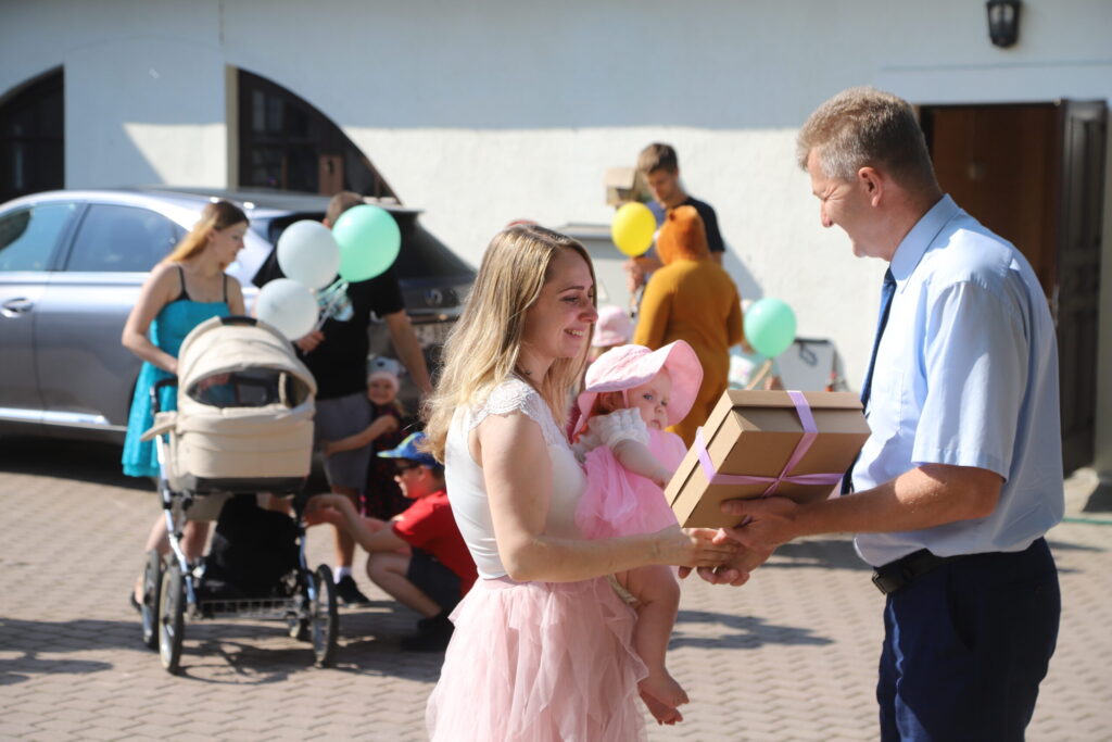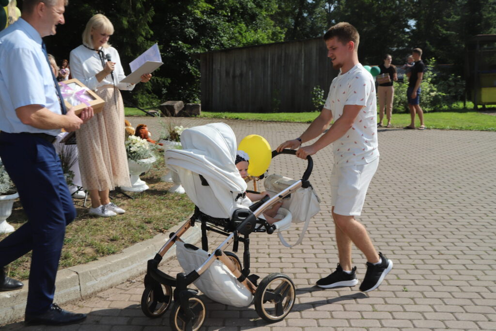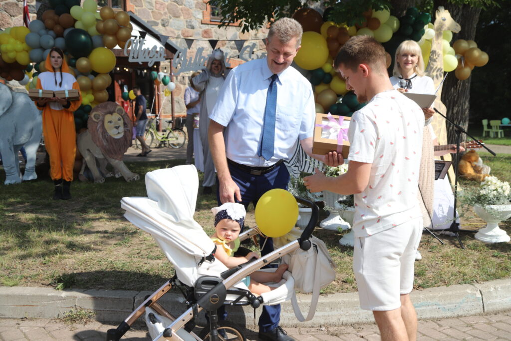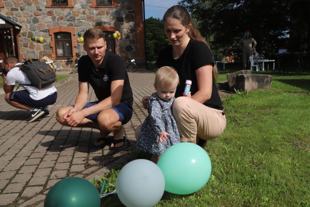 Tāpat kā pērn arī šogad pasākumā sumināja to mazuļu vecākus, kuri šī gada laikā svin savu pirmo kāzu gadadienu. Starp viņiem arī mazās Adrijas Leonovičas vecāki. Adrijas mamma Santa Leonoviča “Dzirkstelei” stāsta, ka dzīvot ar mazu bērnu Gulbenē ir ideāli! Viņai ļoti patīk ar meitiņu pastaigāties pa Vecgulbenes parku. “Tik mierīgi! Šķiet, ka tik karaliski var izstaigāties! Pilsētā arī ir labi, bet tur man ļoti patīk. Adrijai ir deviņi mēneši. Bērns man ir kā Dieva dāvana. Mierīga, sabiedriska, smaidīga, visus apbur,” priecājas jaunā māmiņa, kuru uz Gulbeni atvedusi mīlestība. Nesen ar mīļoto vīrieti, Adrijas tēti, Santa mija gredzenus. “Vīrs ir gulbenietis, un man patīk Gulbenē. Te ir sirsnīgi un jauki cilvēki. Man nepatīk lielas pilsētas. Šī tradīcija – mazuļu sumināšana, ir superīga! Ir patīkami saņemt dāvaniņu. Arī, kad meitiņa piedzima, saņēmām dāvanā skaisti noformētu sedziņu. Tas ļoti silda sirdi. Patīkami!” uzsver Santa.