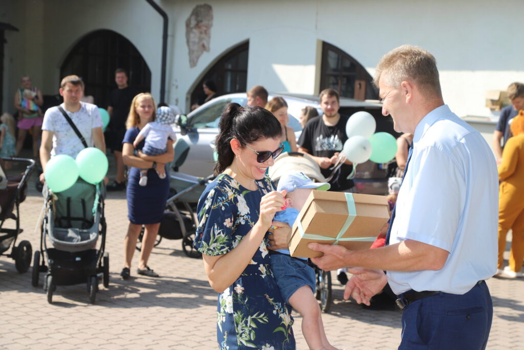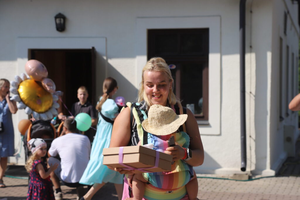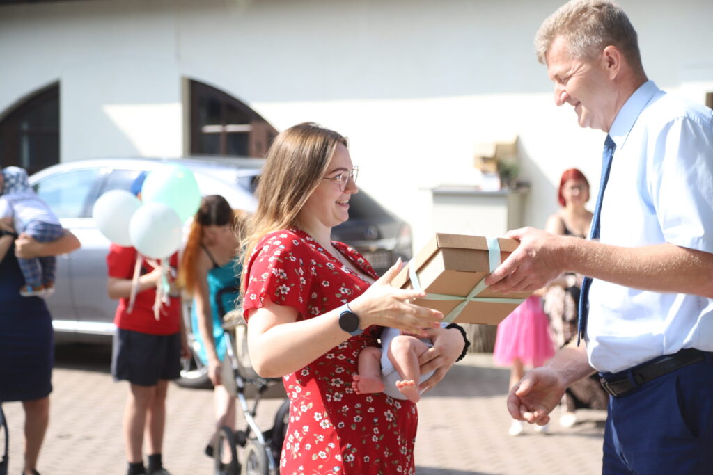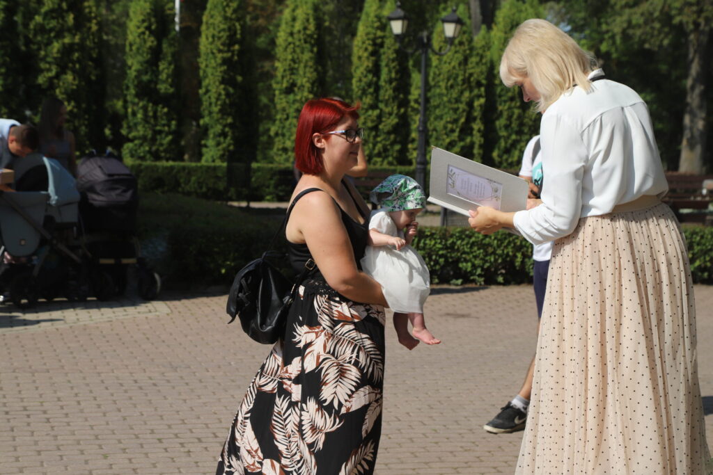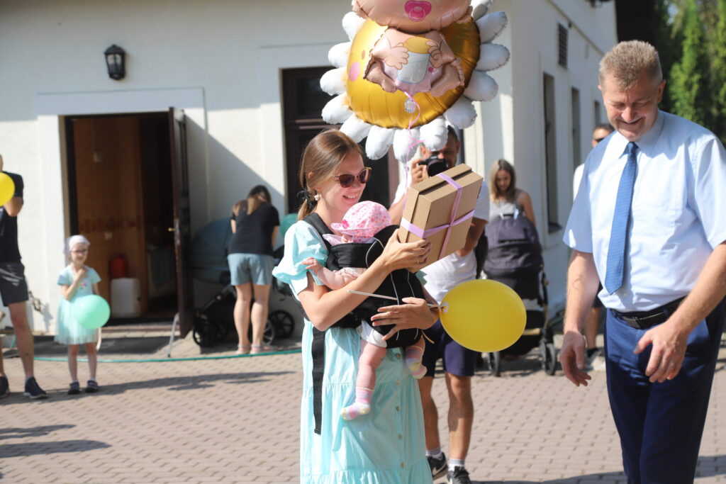 Tāpat kā pērn arī šogad pasākumā sumināja to mazuļu vecākus, kuri šī gada laikā svin savu pirmo kāzu gadadienu. Starp viņiem arī mazās Adrijas Leonovičas vecāki. Adrijas mamma Santa Leonoviča “Dzirkstelei” stāsta, ka dzīvot ar mazu bērnu Gulbenē ir ideāli! Viņai ļoti patīk ar meitiņu pastaigāties pa Vecgulbenes parku. “Tik mierīgi! Šķiet, ka tik karaliski var izstaigāties! Pilsētā arī ir labi, bet tur man ļoti patīk. Adrijai ir deviņi mēneši. Bērns man ir kā Dieva dāvana. Mierīga, sabiedriska, smaidīga, visus apbur,” priecājas jaunā māmiņa, kuru uz Gulbeni atvedusi mīlestība. Nesen ar mīļoto vīrieti, Adrijas tēti, Santa mija gredzenus. “Vīrs ir gulbenietis, un man patīk Gulbenē. Te ir sirsnīgi un jauki cilvēki. Man nepatīk lielas pilsētas. Šī tradīcija – mazuļu sumināšana, ir superīga! Ir patīkami saņemt dāvaniņu. Arī, kad meitiņa piedzima, saņēmām dāvanā skaisti noformētu sedziņu. Tas ļoti silda sirdi. Patīkami!” uzsver Santa.