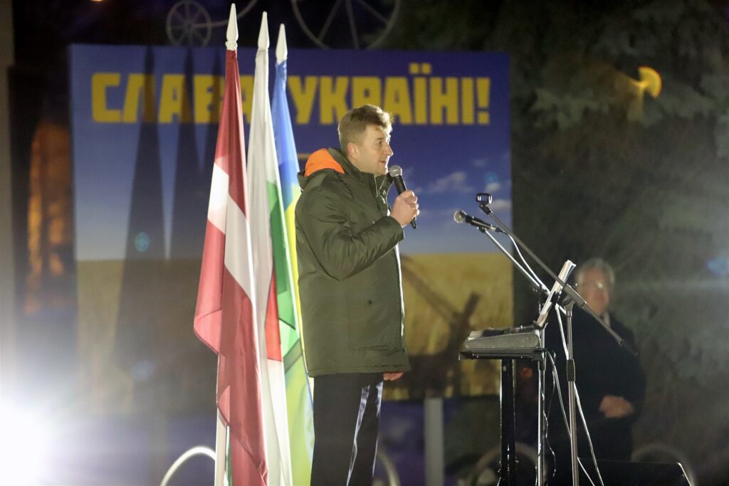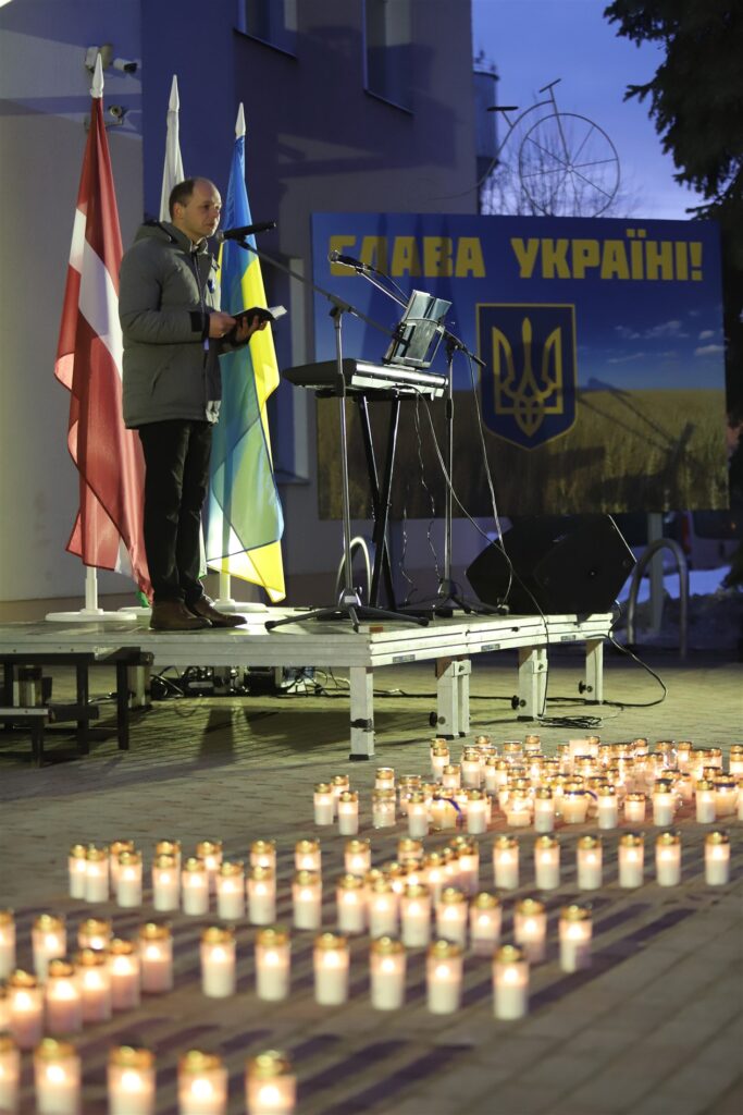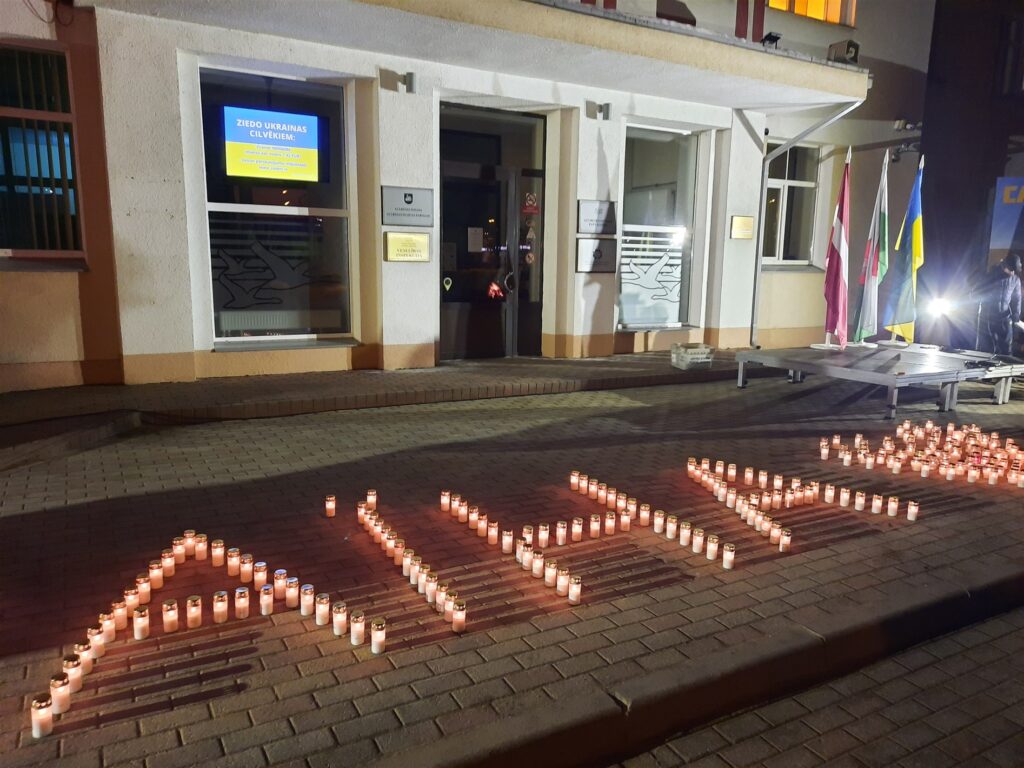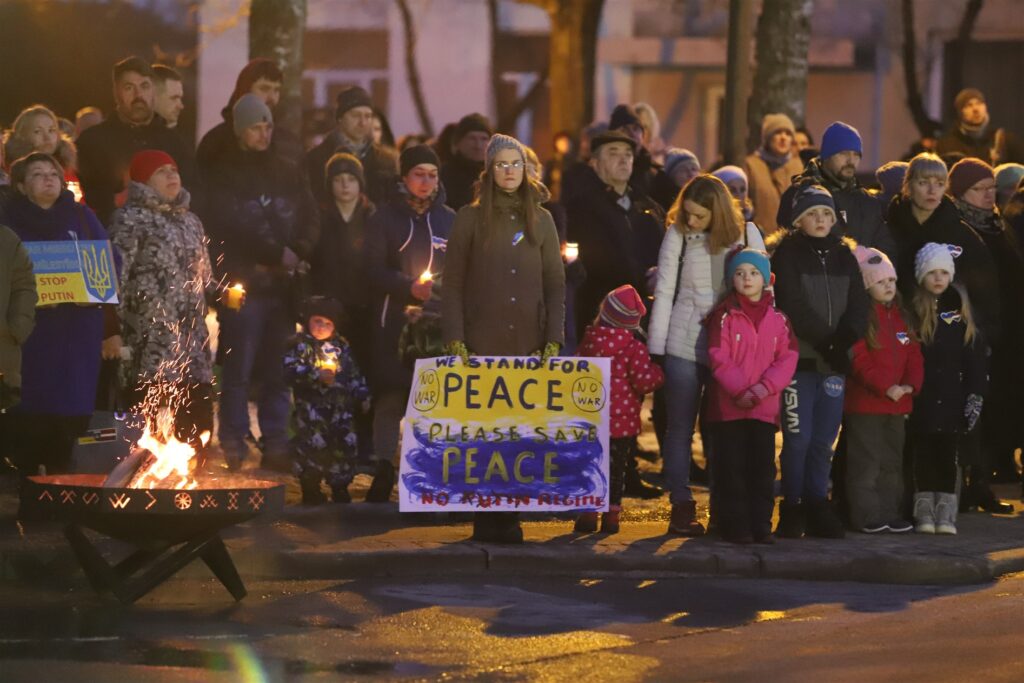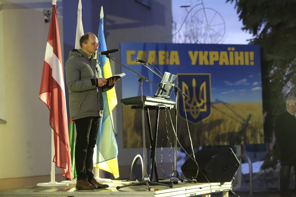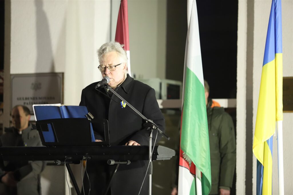 Aptuveni 300 cilvēki Gulbenē 2.martā mītiņā pauda atbalstu un solidaritāti Ukrainai.