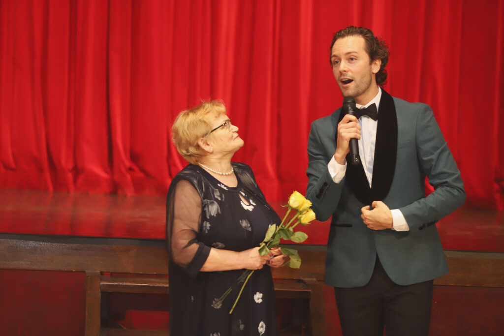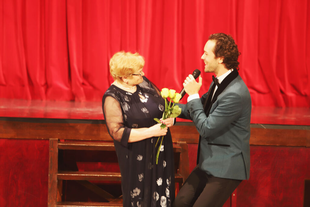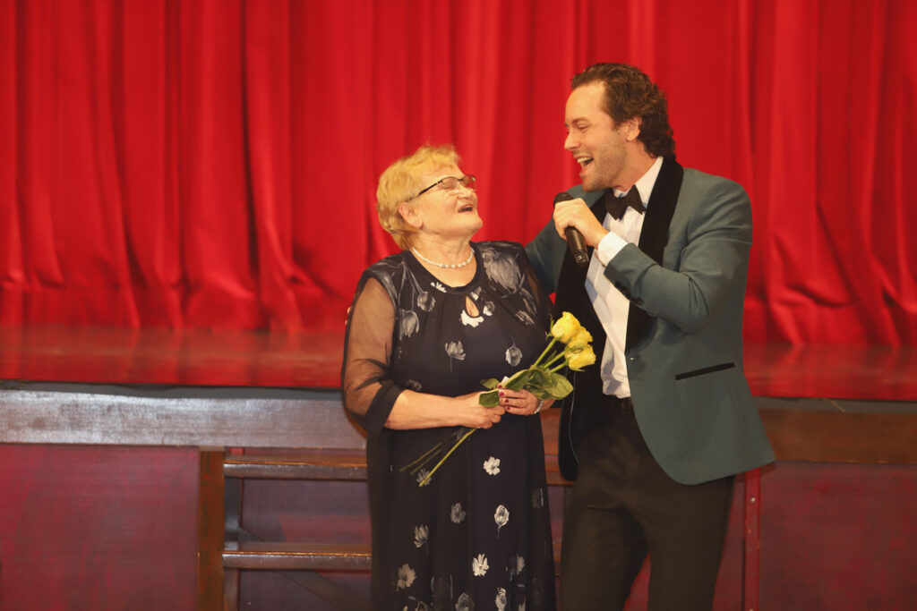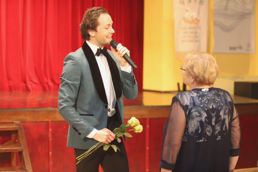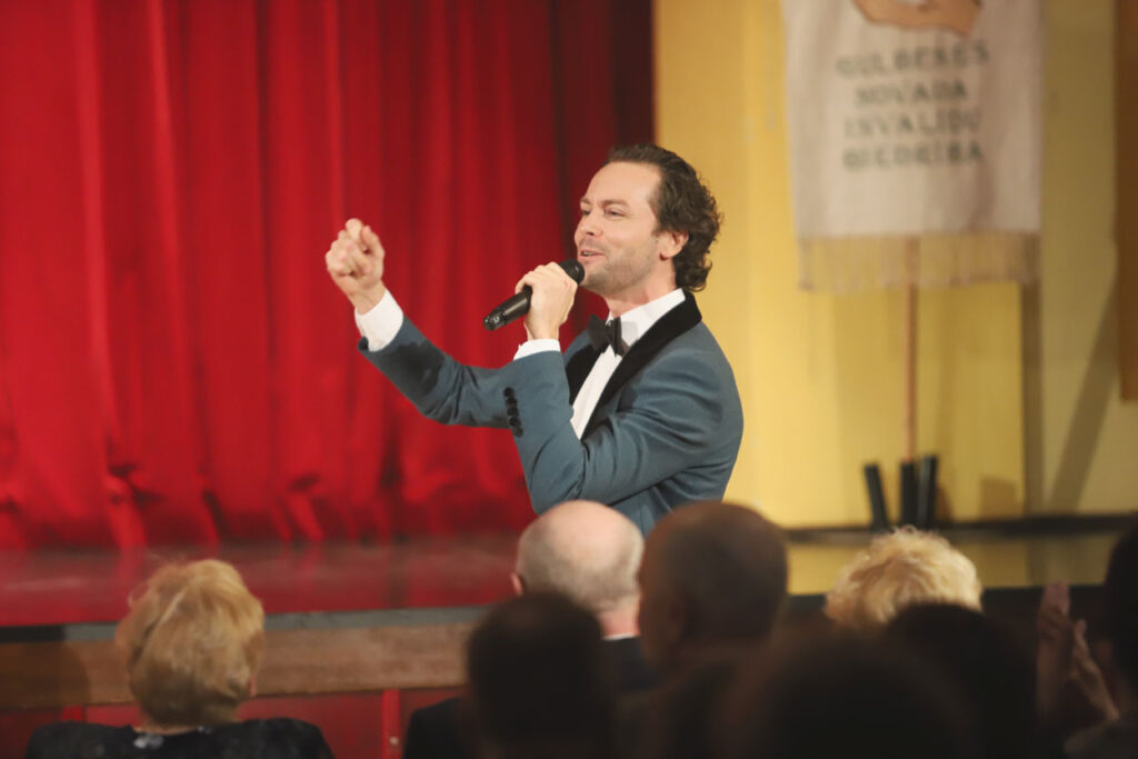 Sirsnīgi un romantiski. Jubilejas pasākumu skanīgu un atraktīvu vērsa vokālista Aināra Bumbiera klātbūtne. Viņš prata aizkustināt visu pasākuma dalībnieku sirdis. Foto: Gatis Bogdanovs