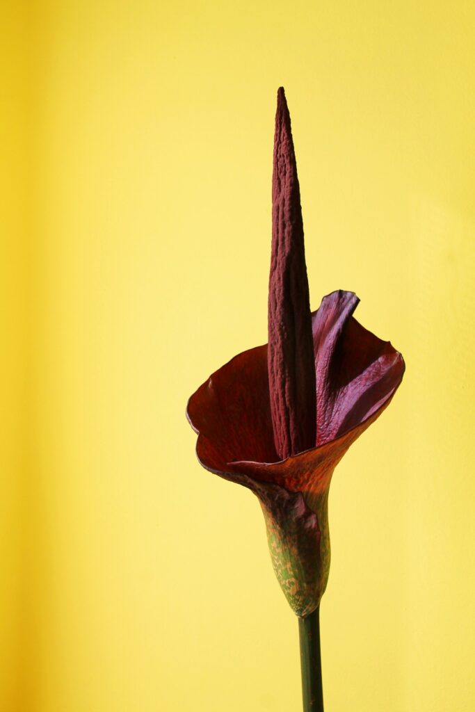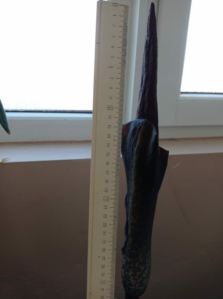 Gulbenes novada bibliotēkas sabiedrisko attiecību speciāliste Egita Garā “Dzirkstelei” stāsta, ka bibliotēkas kartupeļpalmas zieda krāsa ir tumši sarkana, nedaudz violeta. Šobrīd, ziedēšanas laikā, kartupeļpalma izdala īpatnēju smaku, kas atgādina trūdošu gaļu. Tas tādēļ, ka tās ziedputekšņi mēģina pievilināt gaļas mušas.