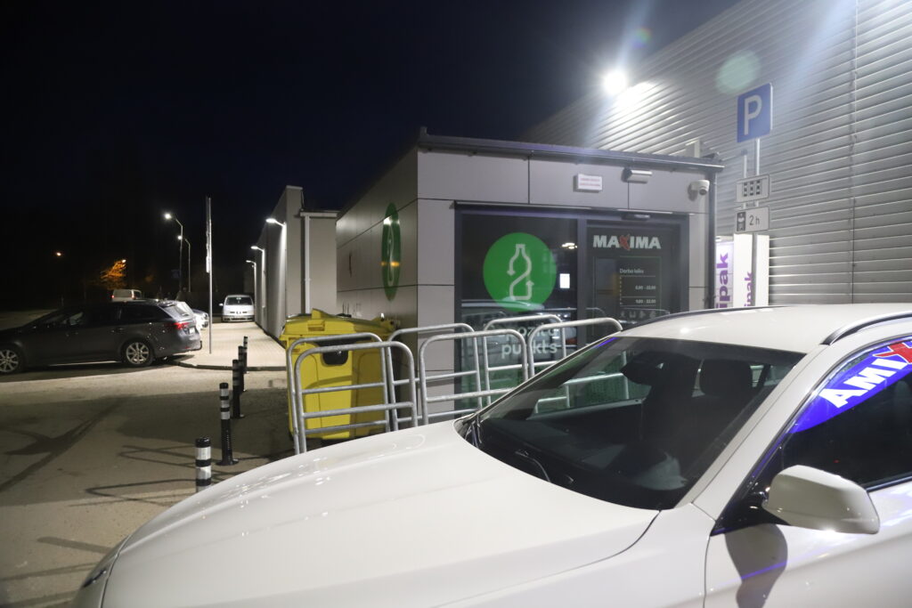 Dzirkstele” arī pārliecinājās, ka šī zīme, kura tika uzstādīta pirms taromāta, gandrīz nav pamanāma, īpaši tumsā. Un, ja autovadītājs noliek transportlīdzekli pēc noteikumiem, tad neviens izbraukt no stāvlaukuma nevar. Zīme tika uzstādīta, kad pie veikala vēl nebija taromāta. Iespējams, tagad tā ir jāmaina. Foto: Gatis Bogdanovs