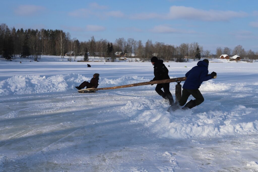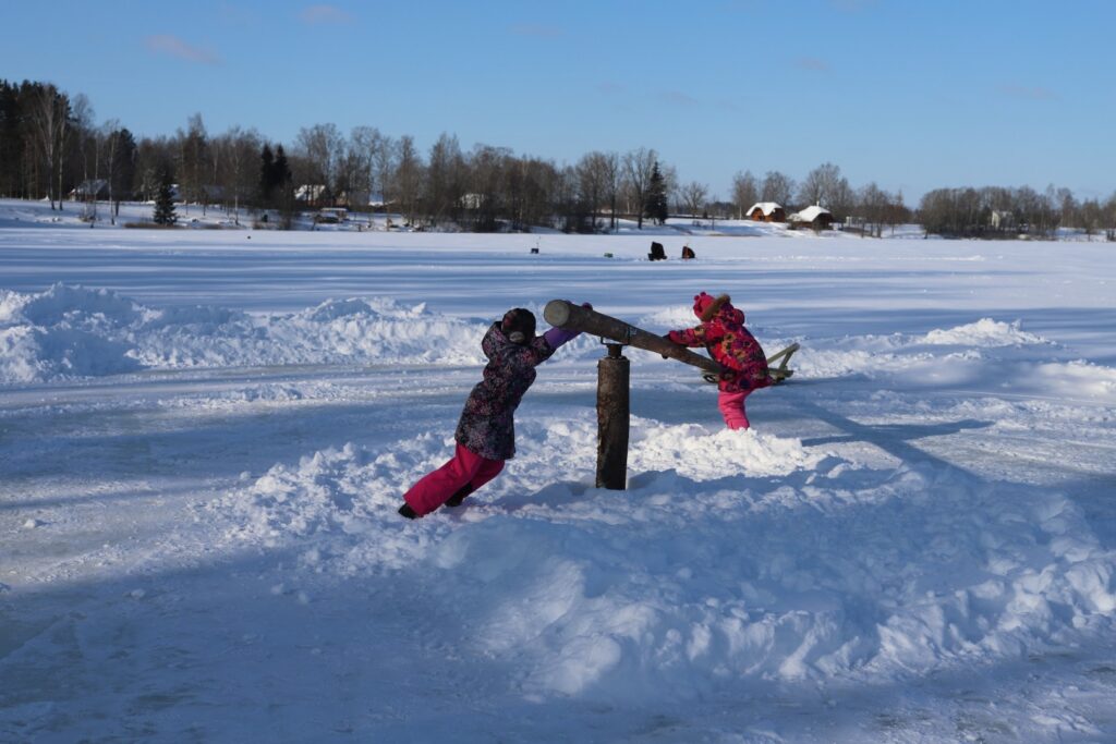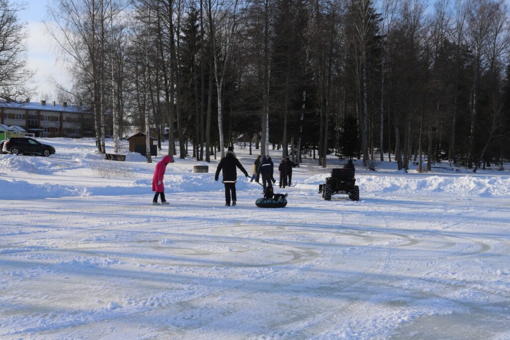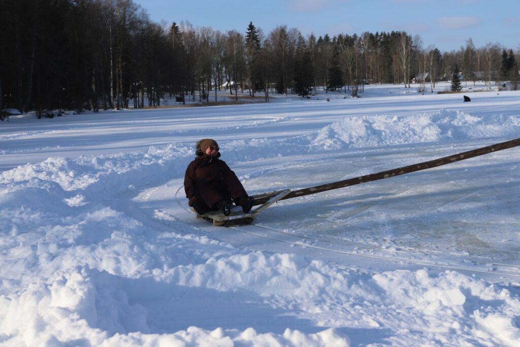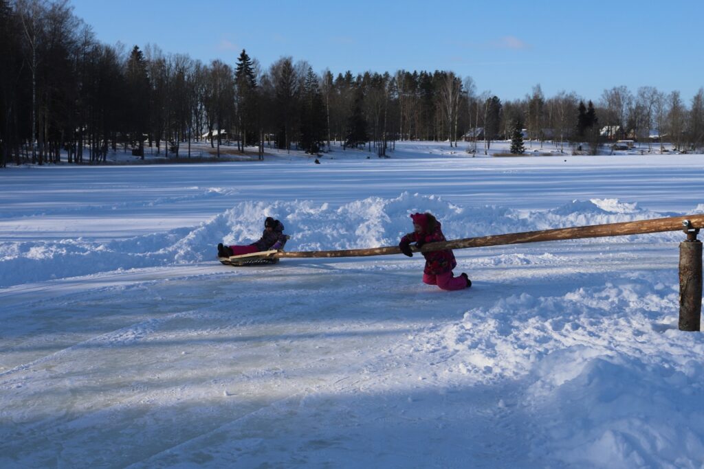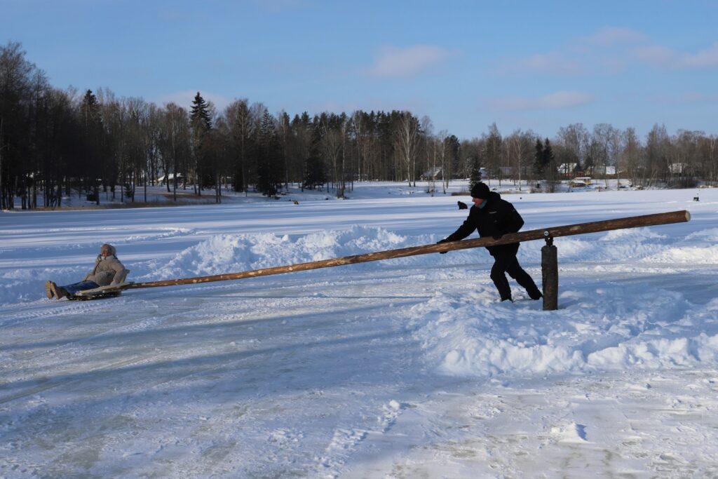 “Dzirkstele” novēroja, ka dažādas aktivitātes, arī izjādes ar zirgiem un vizināšanās kamanās, ko piedāvāja zemnieku saimniecības “Pilssēta” īpašniece Guna Ģērmane, noritēja visu dienu. Arī ledus lēze, visticamāk, ezerā paliks līdz pat pavasarim. Tiem, kas vēlas izmēģināt sendienu karuseli, jādodas uz Stāmerienas ezeru iepretim daudzdzīvokļu mājām. Vien jāpatur prātā, ka šai izklaidei vajadzīgi divi – viens, kas sēd ragavās, un otrs, kas to visu darbina ar savu fizisko spēku.