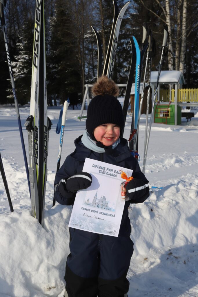 “Mērķis bija piesaistīt slēpot gribētājus un dot iespēju to pamēģināt arī tiem, kas ikdienā ar šo sporta veidu nenodarbojas. Trasē bija izvietoti arī jautrības stafešu elementi, piemēram, šķīvīšu mešana un bumbiņu sišana mērķī. Kas vēlējās, to mēģināja, kas ne, tikai slēpoja. Lai arī tika fiksēti trases laiki, vietas netika dalītas. Dalībniekiem – nelielas balvas un labs noskaņojums,” sacīja J.Andževs.